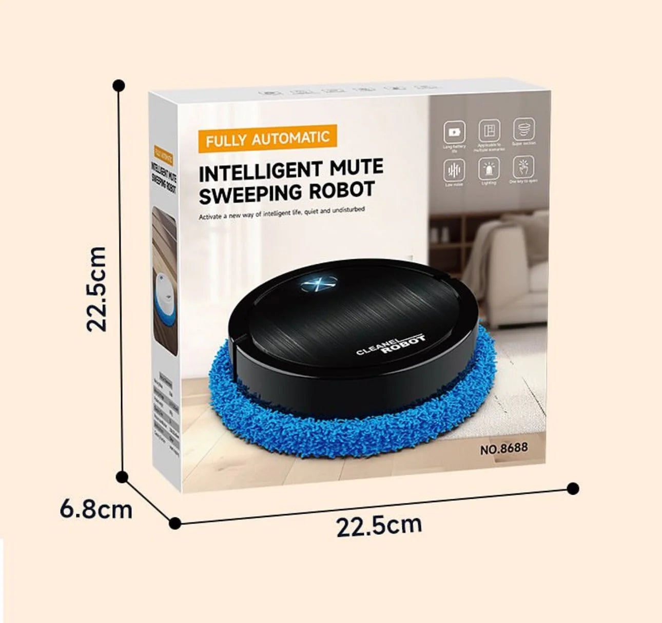 Descripción: Mantén tu hogar siempre limpio sin esfuerzo con este Robot Limpiador Inteligente. Diseñado para barrer, aspirar y trapear, llega a rincones difíciles y te ayuda a mantener los pisos impecables en todo momento.